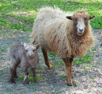 Lamm. Die Muttereigenschaften des Ouessantschafs sind ausgezeichnet und aufgrund ihrer Verträglichkeit können auch die Böcke problemlos bei der Herde bleiben.